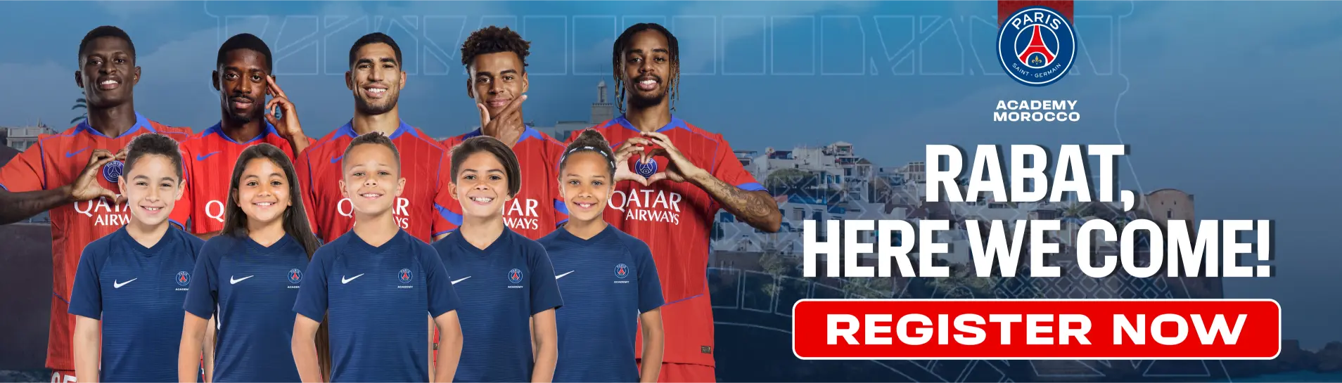 The PSG Academy Morocco, located at Rabat, opened last November. It offers young Moroccan boys and girls aged 5 to 17 high-quality training based on the Paris Saint-Germain training methodology.